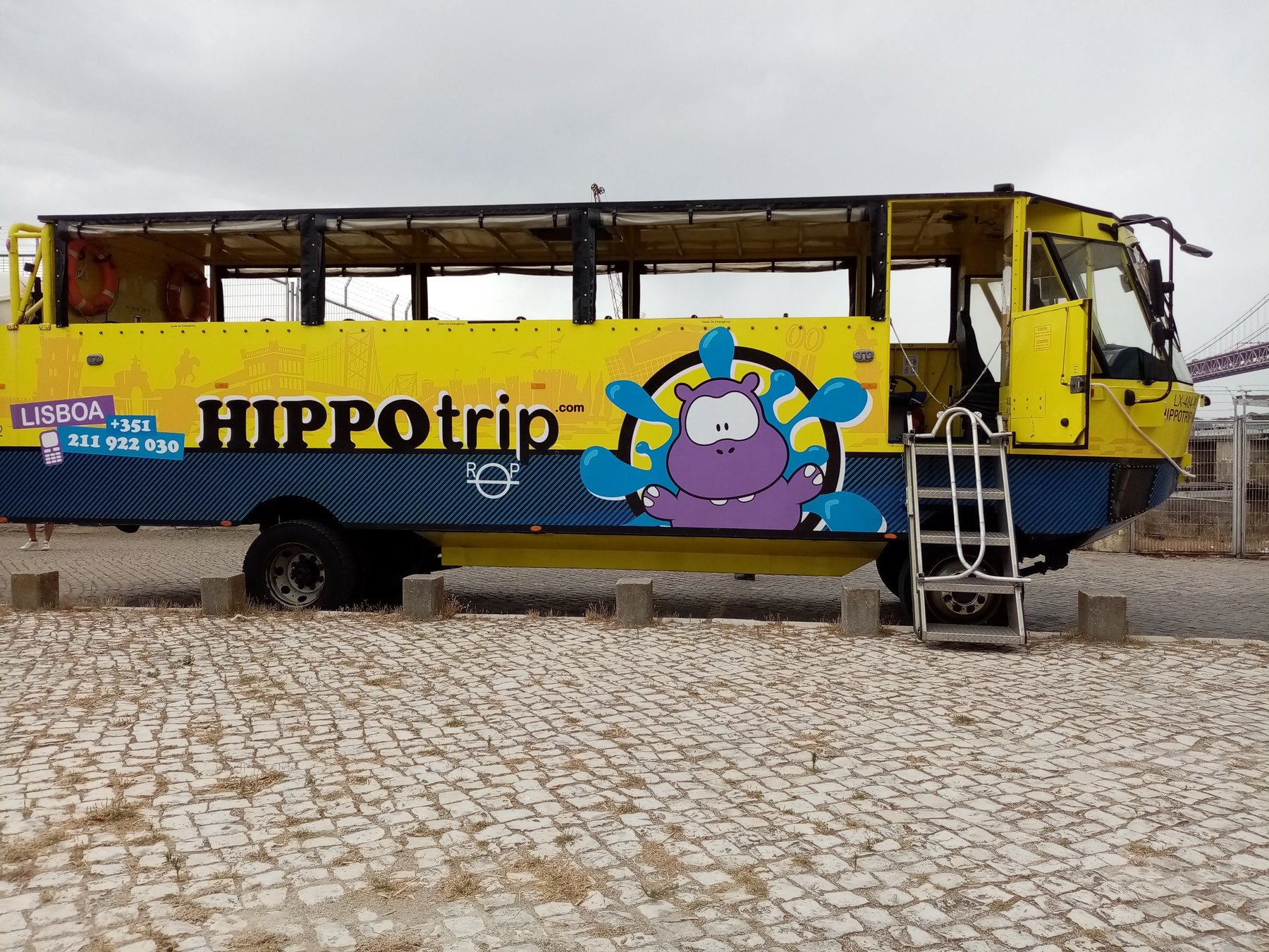Ensuite, au mois de juillet, mes parents, moi et ma soeur, nous sommes allés en vacances, et on a pris un autobus qui marche sur l'eau, à Lisboa.