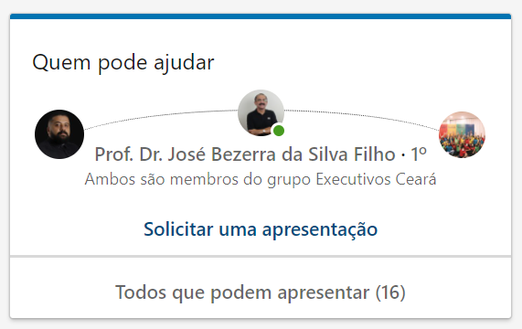 Conexões de 2º grau: são as pessoas que não estão conectadas com você, mas que estão conectados com pelo menos uma pessoa que está na sua rede de 1º grau;