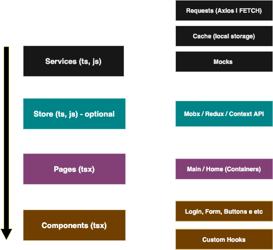 Arquitetura client-side escalável, distribuída em camadas, com o objetivo de promover uma arquitetura front-end que favoreça a reusabilidade de código, coesão, independência de tecnologia e testabilidade.