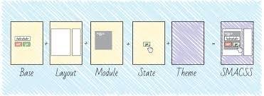 Seu sistema é baseado em cinco categorias: base, layout, module, state e theme.