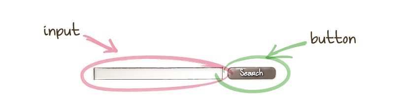 Um campo Input e um botão Search são elementos interno de um container Search Block: