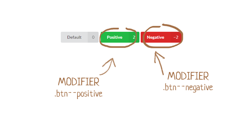 O B.E.M sugere que se for preciso modificar um elemento interno, é precedido adicionar dois hifens ( -- ) após o nome do elemento ou bloco a ser modificado.
