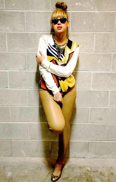 This pose in a low angle would work for contents page or double page spread as it shows the clothing well of the model that would intrigue the reader to find out more about the artist. Also the lightning of the background in this pose would work well as it makes the model stand out more.