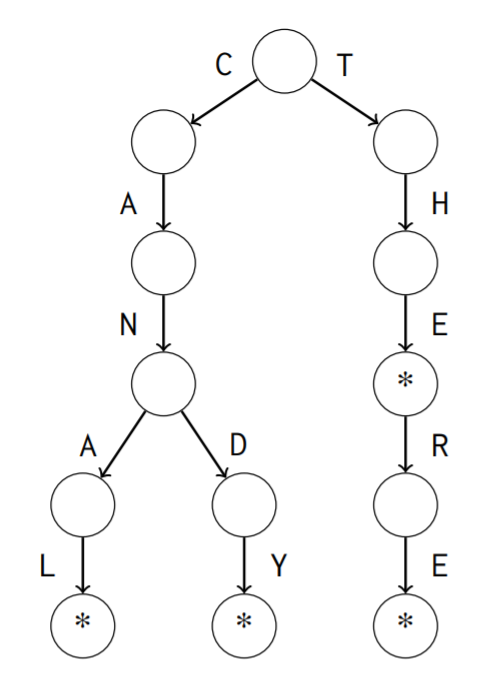 它能夠支援\(O(|S|)\)插入一個字串,\(O(|S|)\)尋找一個字串是否被加入過
