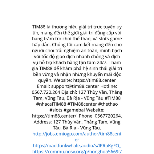 Website: https://tim88.center/. TIM88 là thương hiệu giải trí trực tuyến uy tín, mang đến thế giới giải trí đẳng cấp với hàng trăm trò chơi thể thao, và slots game hấp dẫn. Chúng tôi cam kết mang đến cho người chơi trải nghiệm an toàn, minh bạch với