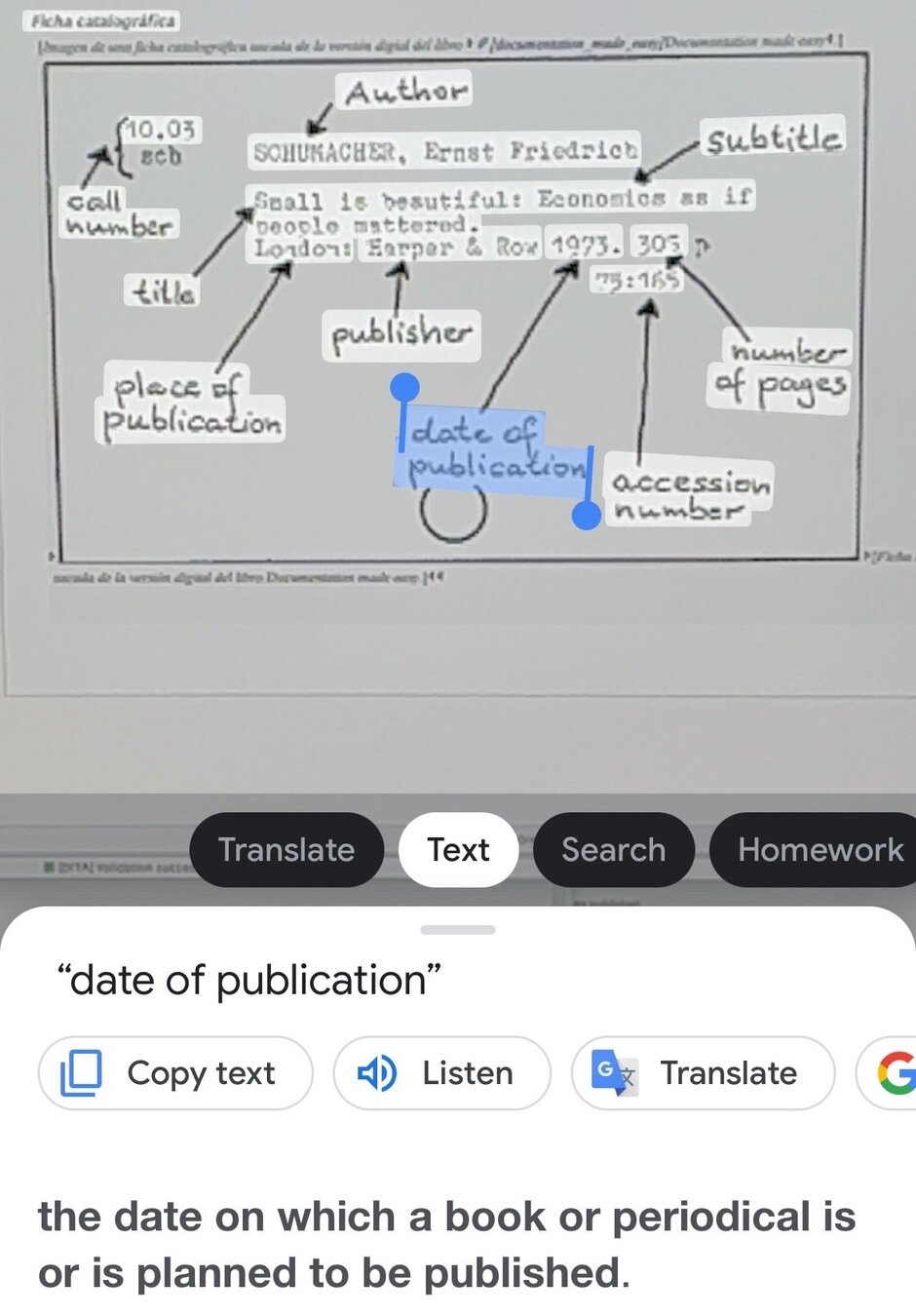 Ficha de catalográfica descargda de la cuenta Flickr del Instituto Inglés Mexicano