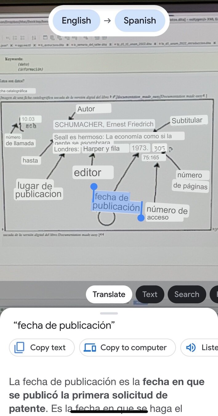Las imagenes en esta sección y la próxima, representan capturas de pantalla utilizando la aplicación Google Lens App desde un sistema iOS en agosto del 2022.