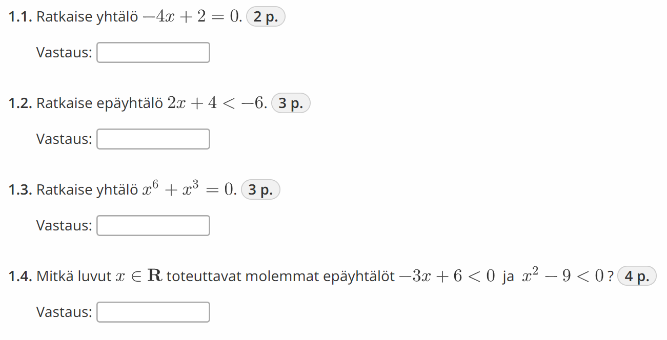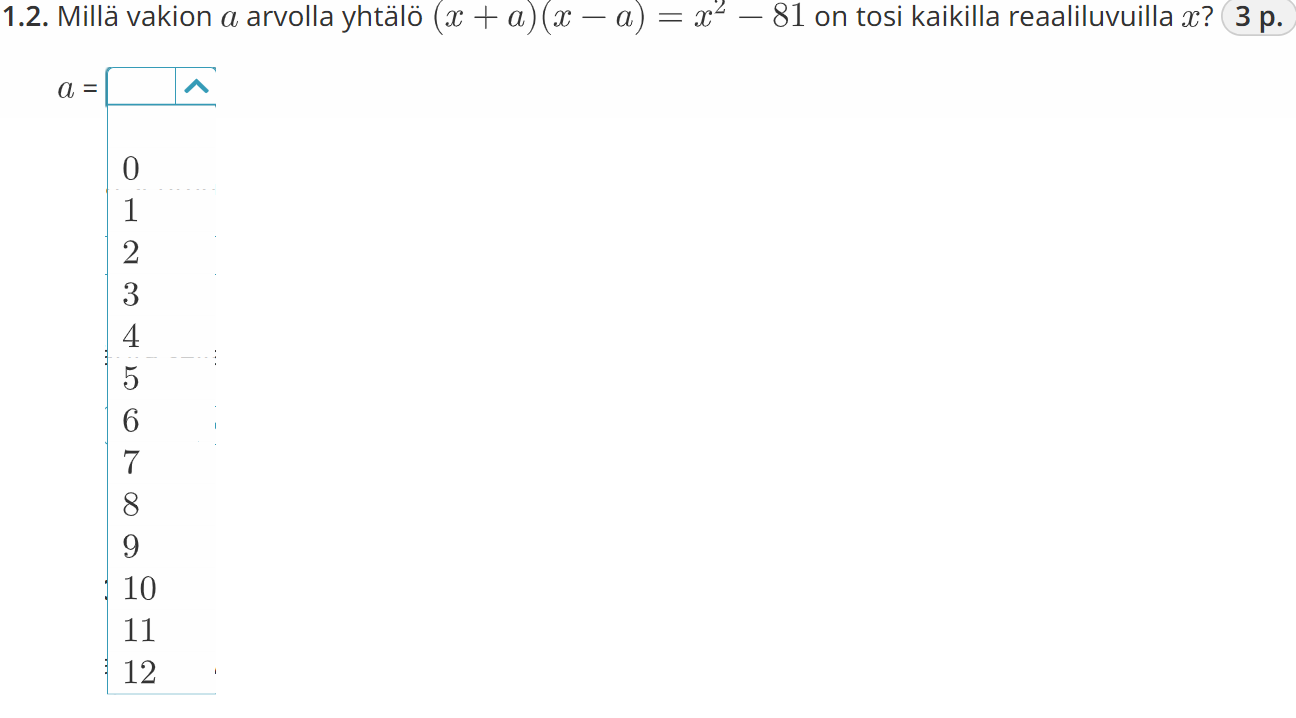 Kokeilu ei riitä osoittamaan väitettä kaikille x, mutta monivalinnassa riittää jälleen eliminoida mahdottomat ratkaisut