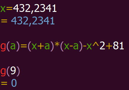 <- Ainoa \(a\), jolla \(g(a)=0\), siis oikea ratkaisu