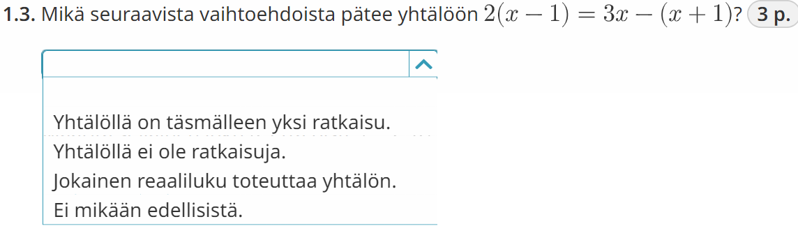 Tässä tapauksessa periaatteessa voi olla hyvä tarkistaa kaikki vaihtoehdot, koska muuten ei ole varmuutta, riippuuko tämä x:n valinnasta