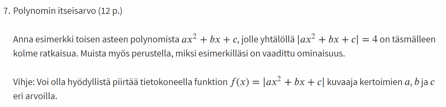 Voi esim. siirtää kaikki termit vasemmalle ja tutkia Speedcrunchissa, mitkä vaihtoehdoista on funktion