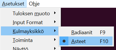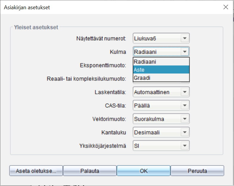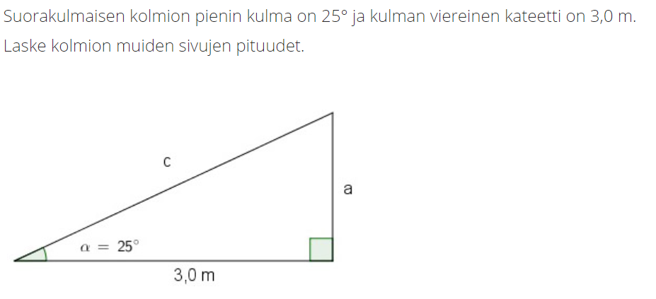 Huom! Laskimesta pitää valita kulma-asetukseksi asteet