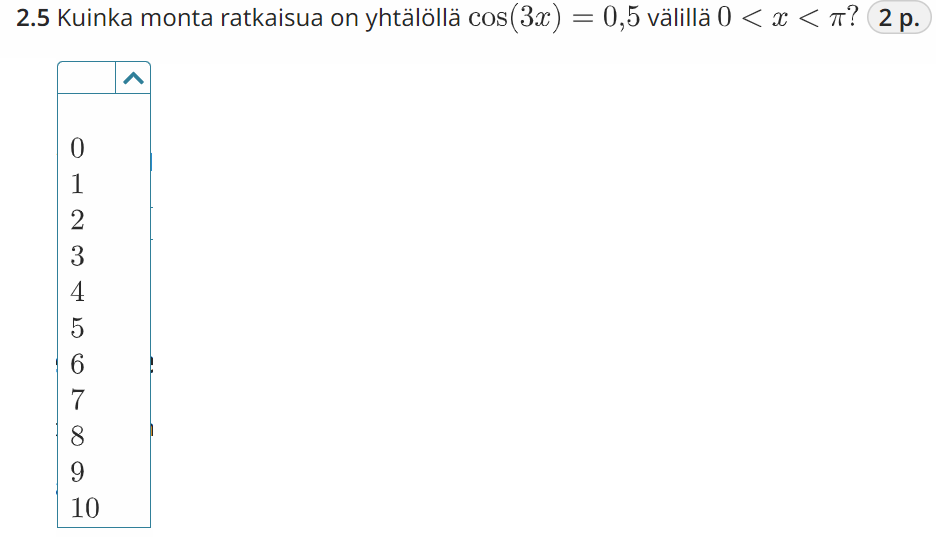 Jos \(0<x<\pi\), niin \(0<3x<3\pi\)