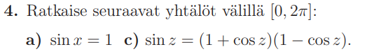 3. otetaan yhteinen tekijä \(\sin z\) ja ratkaistaan tulon nollasäännöllä