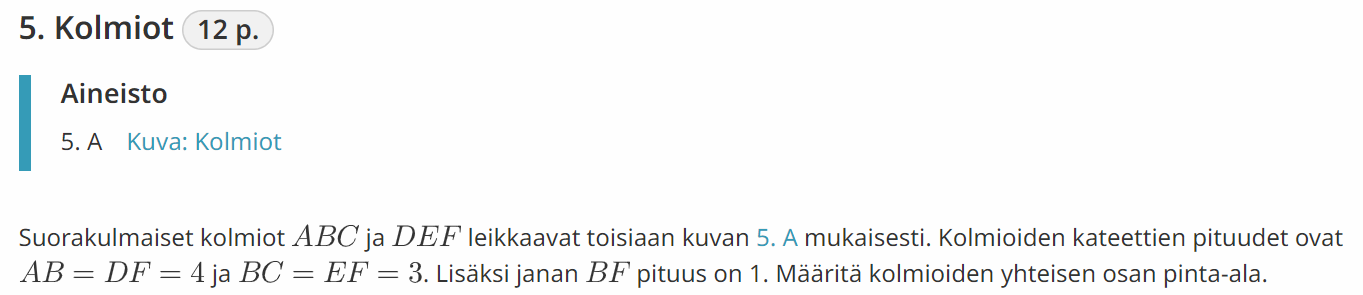 - Suttupaperi ja kynä on hyvä ensiaskel. B-osassa kannattaa hyödyntää kuitenkin myös Geogebraa, jos pystyy ja pyrkiä piirtämään mallikuva niin tarkasti, kuin osaa. Tällöin voi verrata laskujen tuloksia mittaustuloksiin.