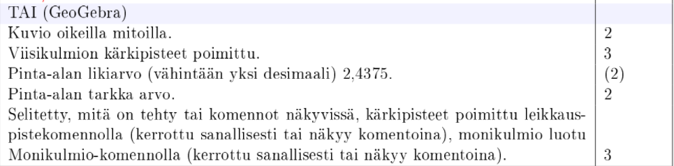 Huom. alustava hvp ei puhu Geogebra-ratkaisusta mitään, joten alustavat pisteet voivat muuttua paljonkin.