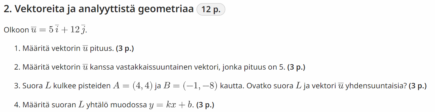 - kun on löydetty sopivat luvut ja kirjoitettu niitÀ vastaavat yhtÀlöt (+1+1p), muodostetaan ja ratkaistaan yhtÀlöpari (+2+1p)