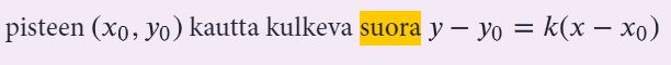 - kÀyttÀÀ suoran yhtÀlön kaavaa ja sieventÀÀ yhtÀlö ratkaistuun muotoon \(y=kx+b\) tai