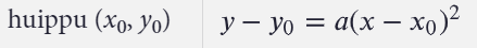 - piirretÀÀn geogebrassa ylös- ja alaspÀin aukeavat paraabelit \(y=ax^2+bx+c\) ja \(y=ux^2+vx+w\) ja kokeillaan liukusÀÀtimillÀ (+4p)