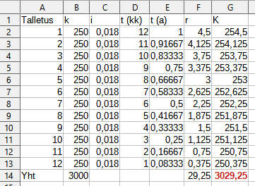 Nyt korko \(r=kit=12300\cdot0{,}0182\cdot\frac{8}{12}=149{,}24\) (€)