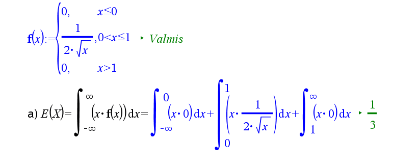 Huom. nspire ei tee eroa pienen f:n ja F:n väillä. Jos haluaa määritellä kertymäfunktion laskimeen, kannattaa valita toinen nimi, vaikka kf