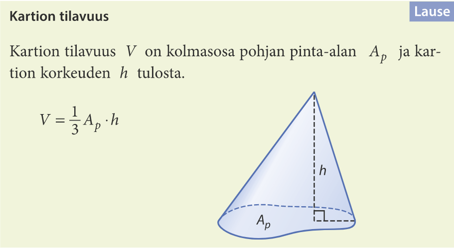 Kartion tilavuus on kolmasosa vastaavan lieriön tilavuudesta!