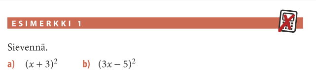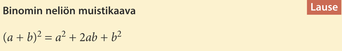 Binomin neliön muistikaava on nopeampi tapa laskea \((a+b)^2\) kuin kertoa \((a+b)(a+b)\) auki
