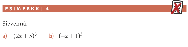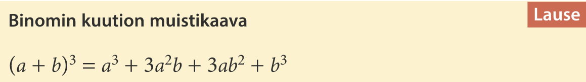 Binomin kuutiota laskiessa voi soveltaa myös binomin neliön kaavaa