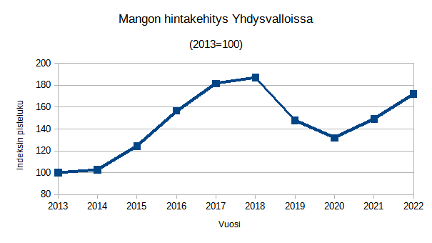 | Vuosi | Mangon keskihinta (USD) | Indeksin pisteluku (2013=100) |