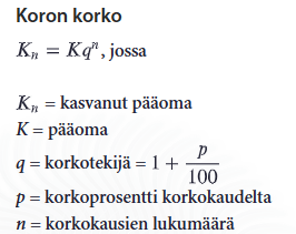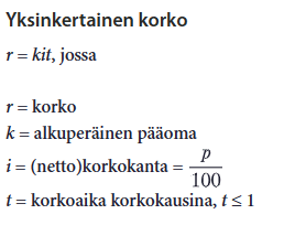 Huom. tässä kaavassa lasketaan vain koron suuruus