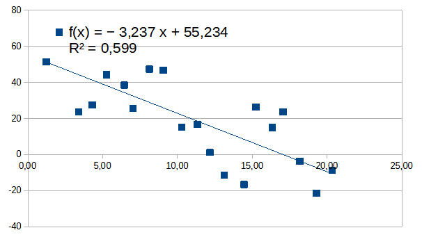 1) Korrelaatiokerroin ei ole sama asia kuin sovitettavan suoran kulmakerroin! Kulmakerroin kuvaa suoran jyrkkyyttä, korrelaatiokerroin kuinka hyvin pisteet sopivat suoralle.