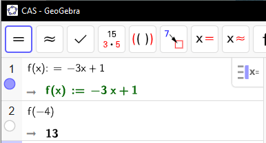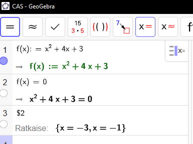 Geogebran CAS-näkymä: