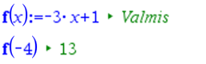 Muuttujan arvo \(-4\) sijoitetaan funktion lauseekkeeseen muuttujan \(x\) paikalle.