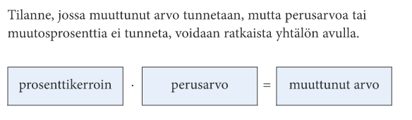 Esim. 100%:n kasvu tarkoittaa kaksinkertaista, 50%:n väheneminen 0,5-kertaista