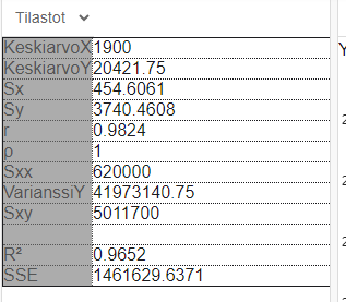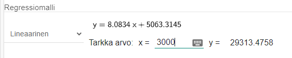 Taulukossa on yrityksen somemainontaan kuukaudessa käyttämä raha ja kuukauden myynti euroina. Sovita aineistoon lineaarinen malli.