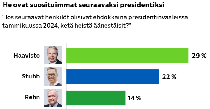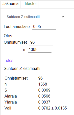 Koska Haaviston kannatus ei sisälly Stubbin kannatuksen luottamusväliin, voidaan 95% luottamustasolla sanoa, että Haaviston kannatus on Stubbia suurempi