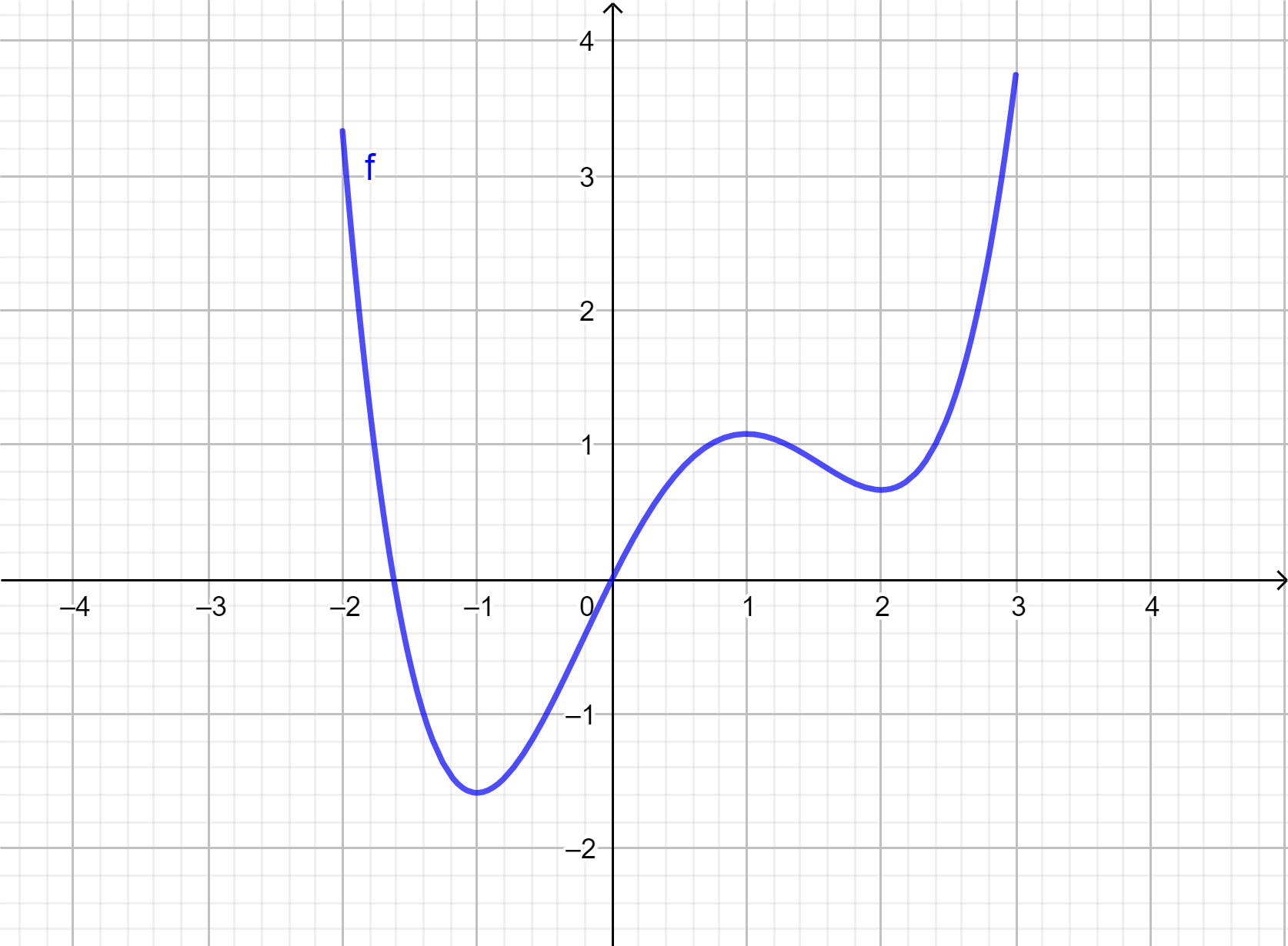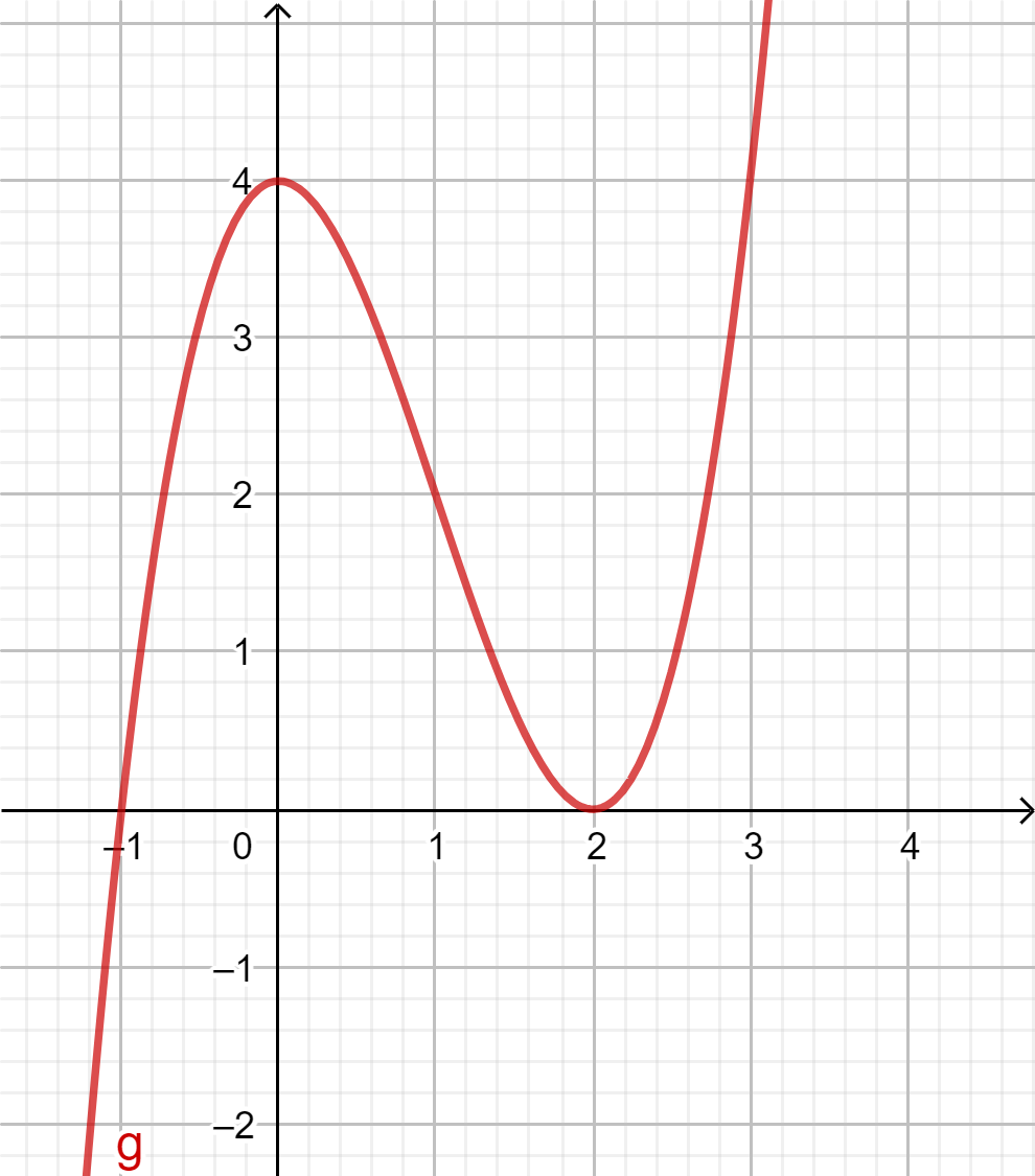 Tutki kuvaajan avulla, onko funktiolla \(g(x)=x^3-3x^2+4\)