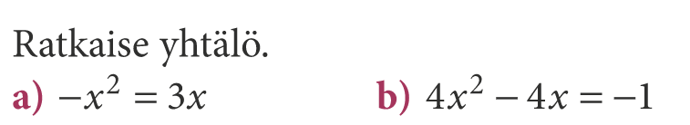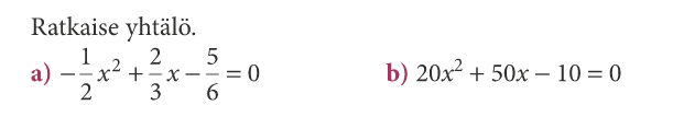 Kaikki toisten asteen yhtälöt saadaan muotoon \(ax^2+bx+c=0\)