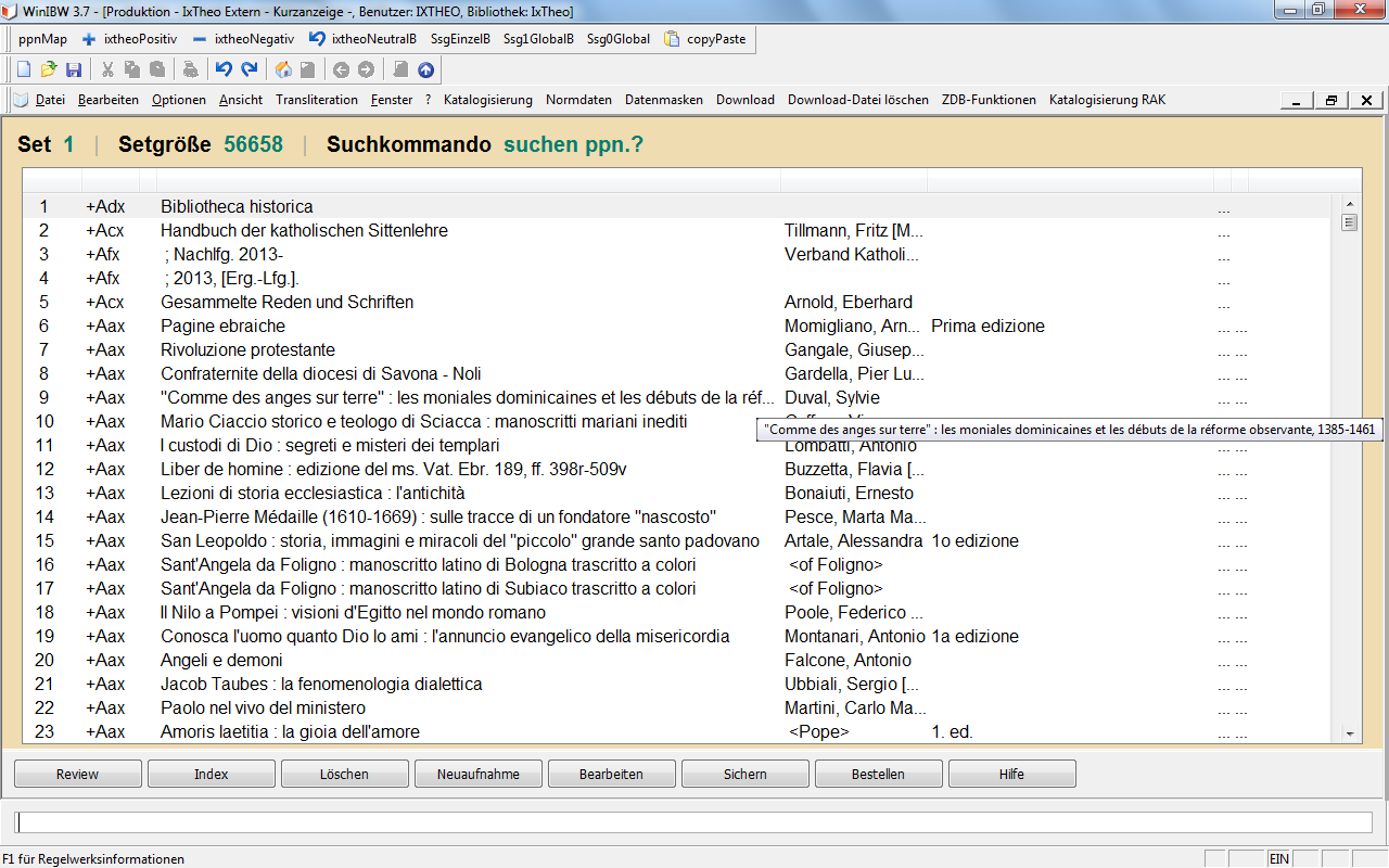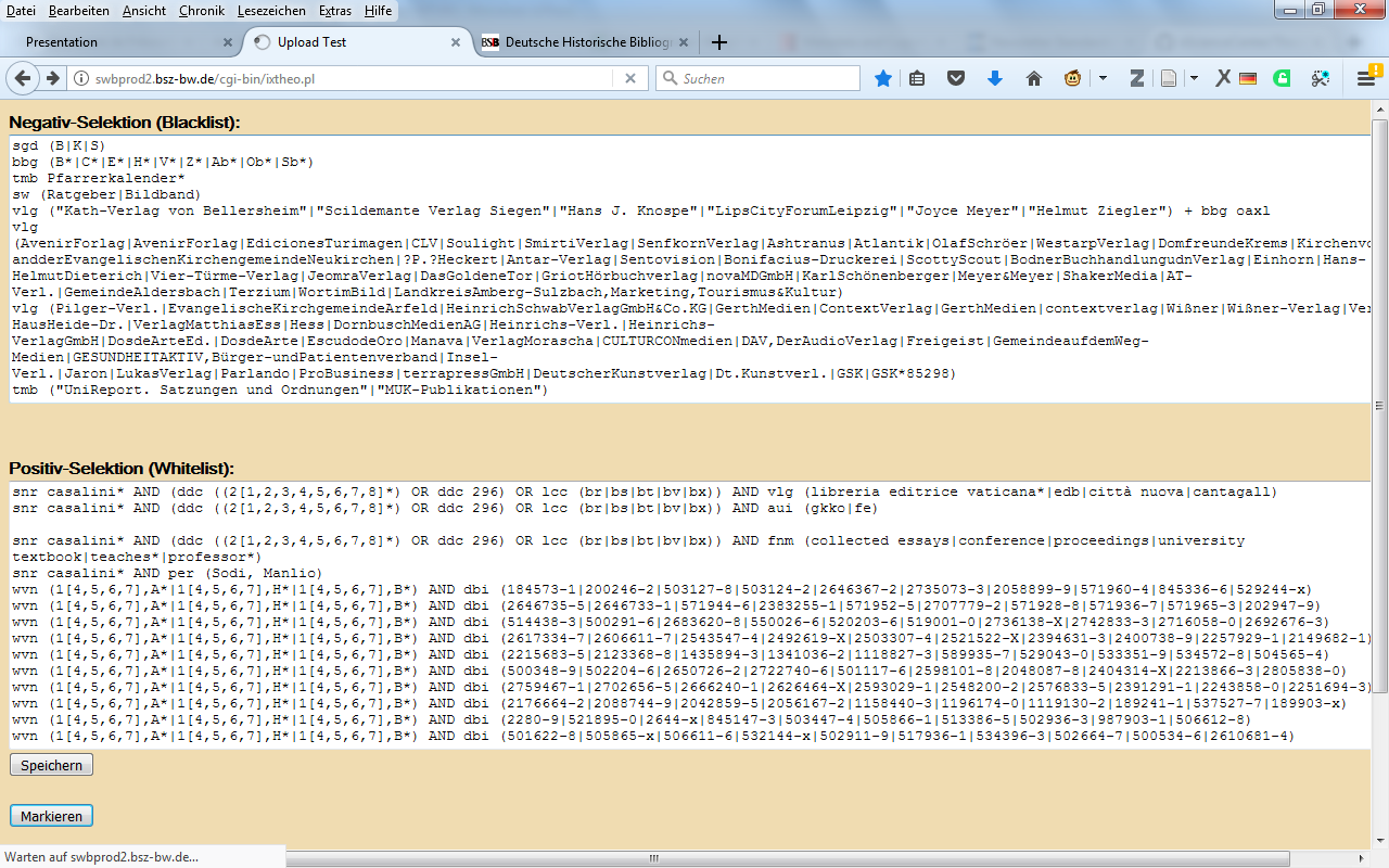 Wöchentlicher Import der positiv gekennzeichneten Titel in den Katalogisierungsbereich der SWB-Datenbank mit IxTheo-Lokalsatz