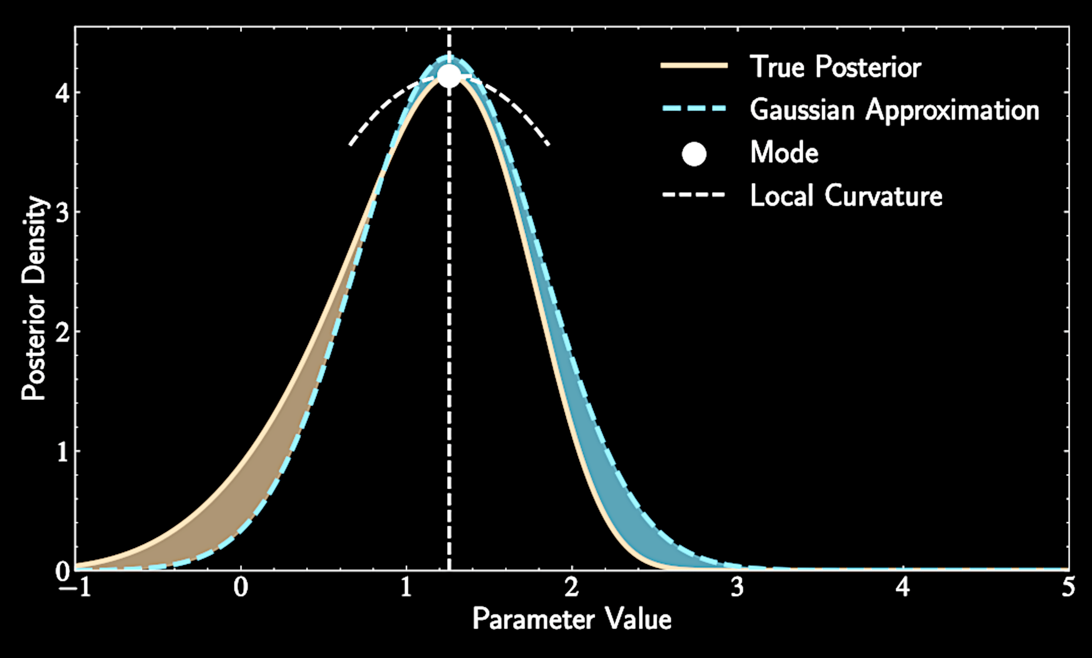 Location of the peak (mode): becomes the mean of our approximating Gaussian