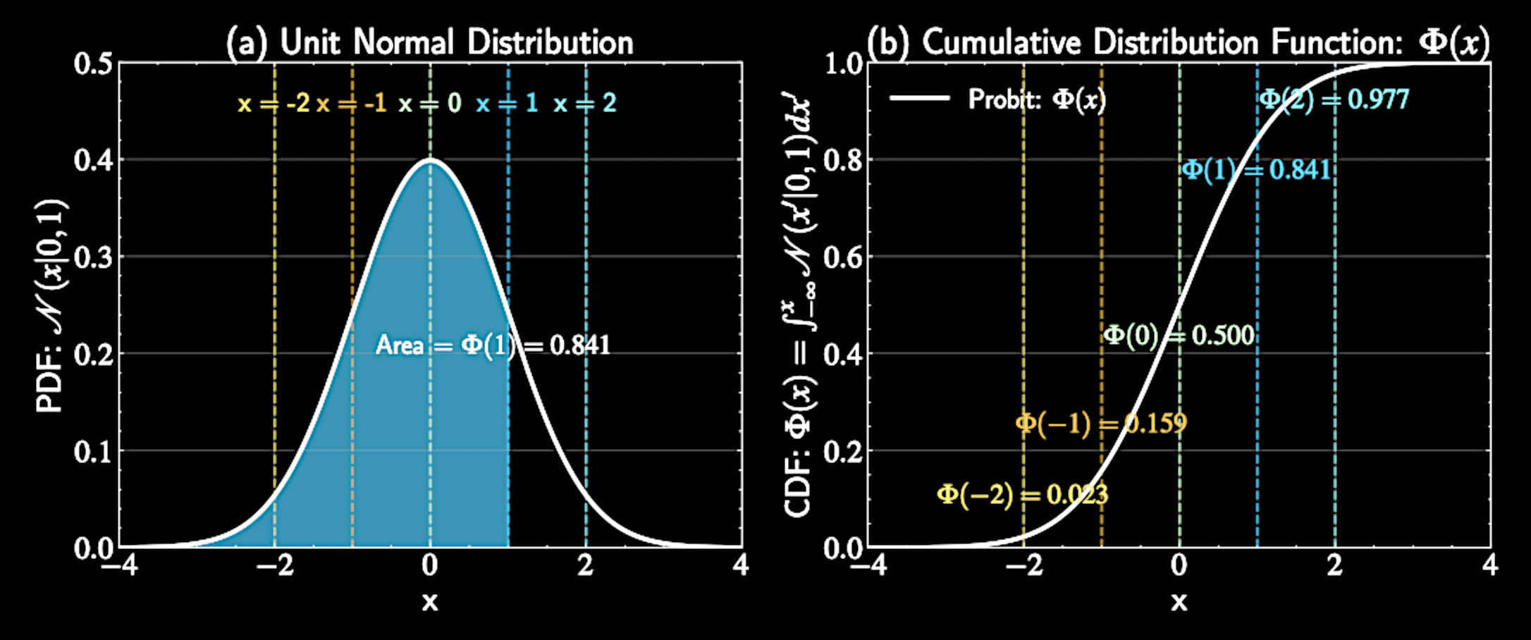 Probit function \( \Phi(x) \): Cumulative distribution function (CDF) of a standard unit Gaussian distribution