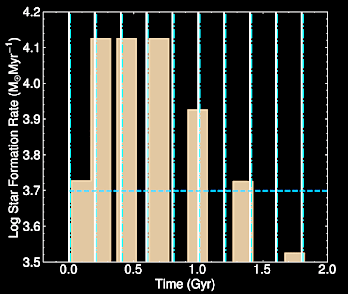 Time resolution ~ 1 Gyr >> star burst scale