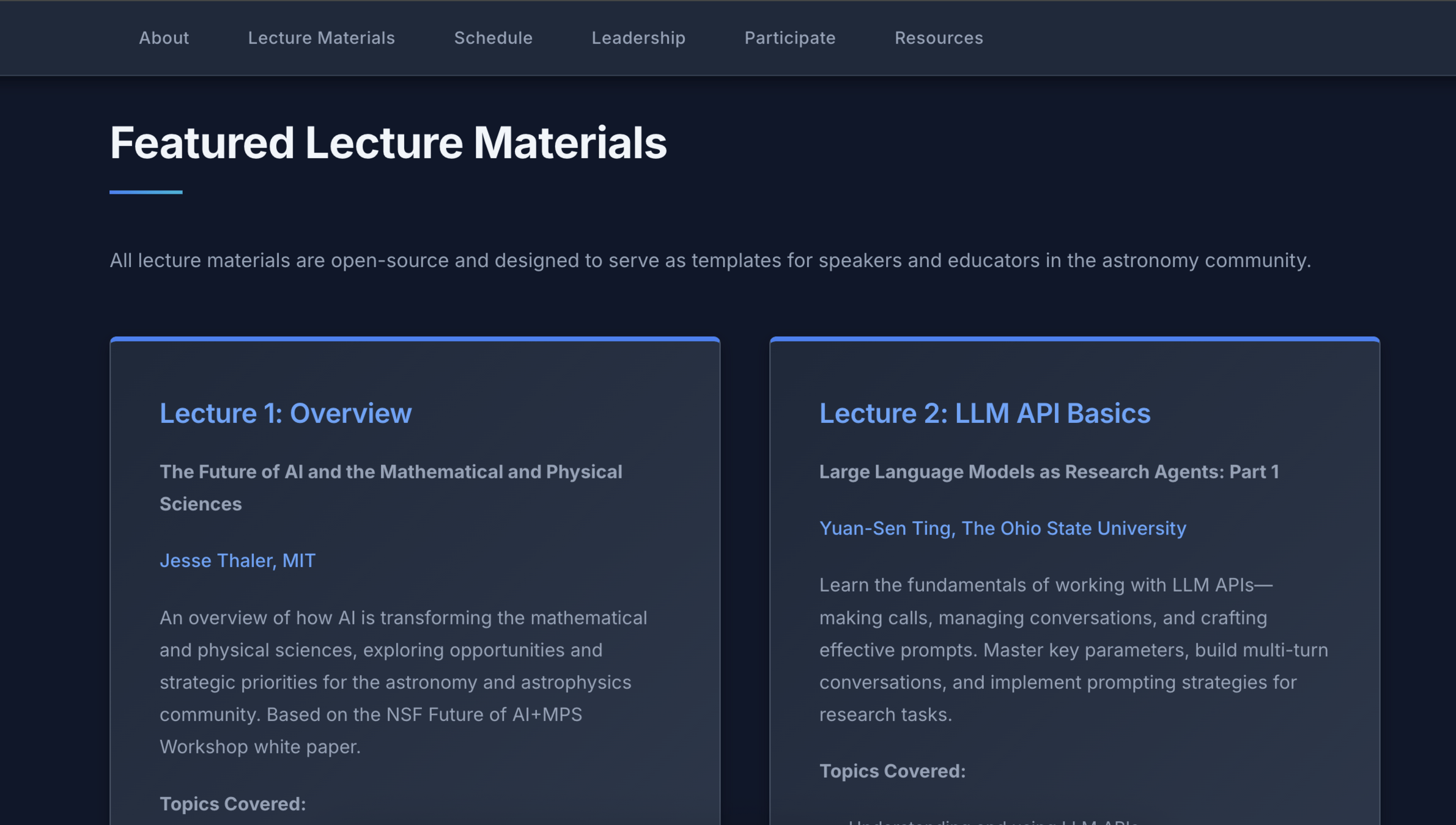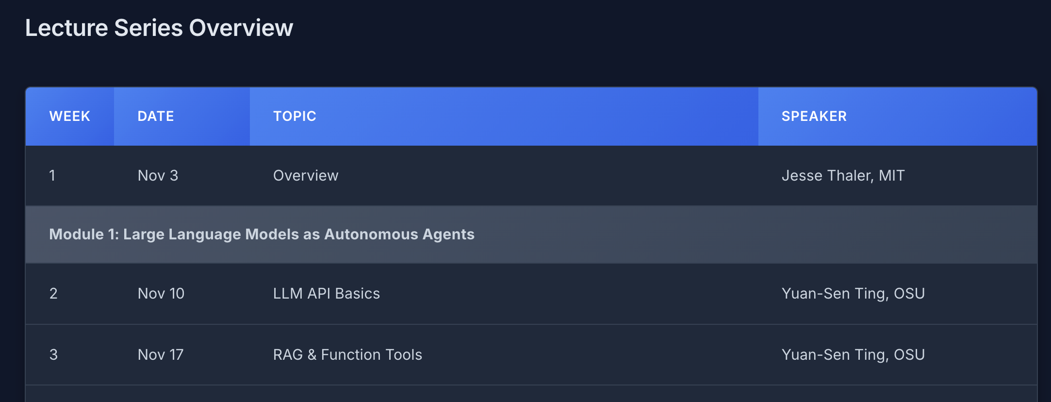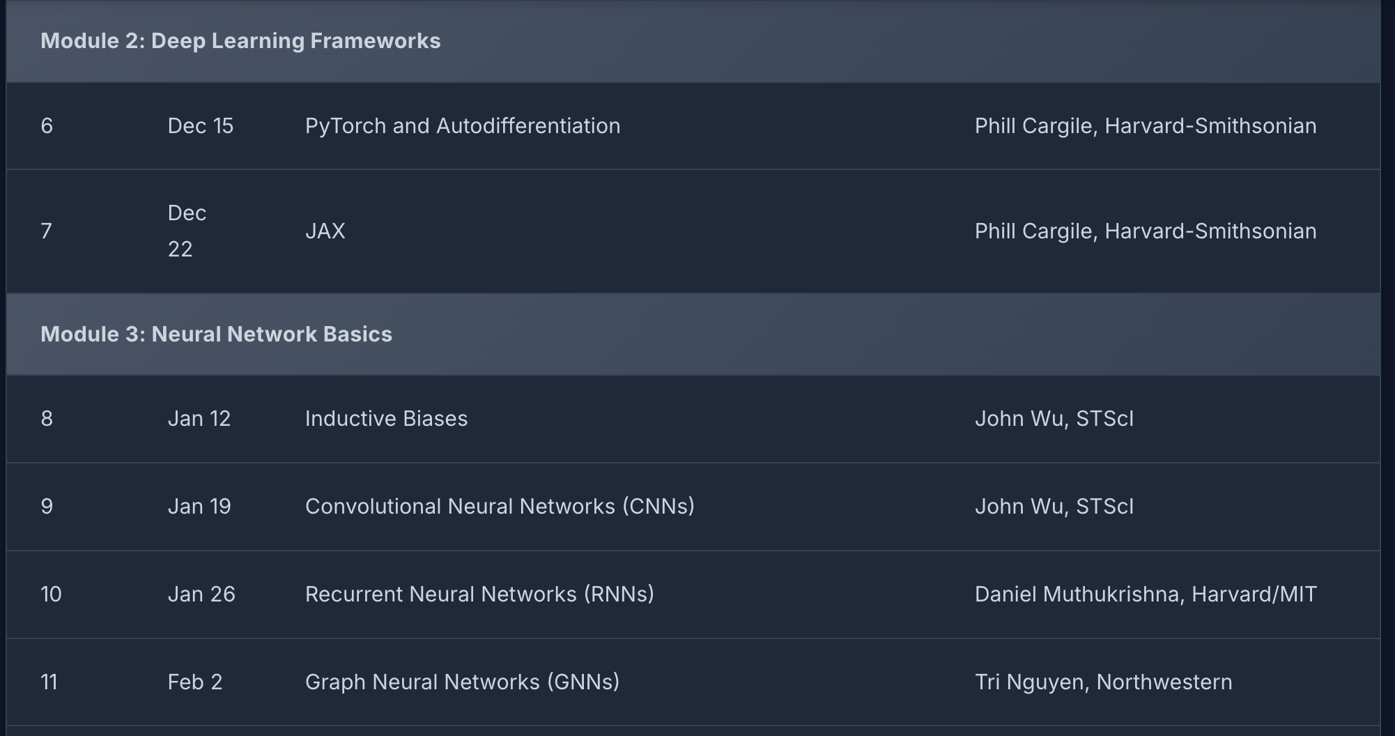A series of hands-on lectures through 2025-2026