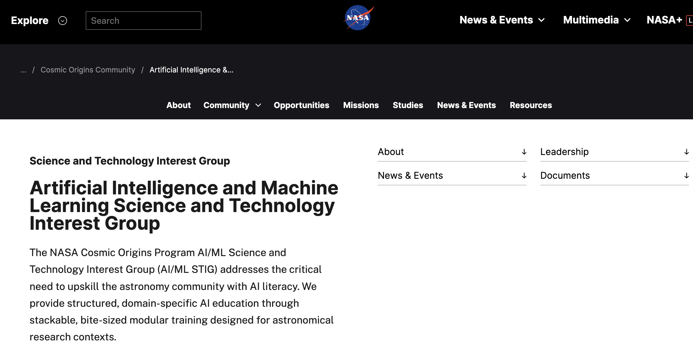 NASA AI/ML Science and Technology Interest Group