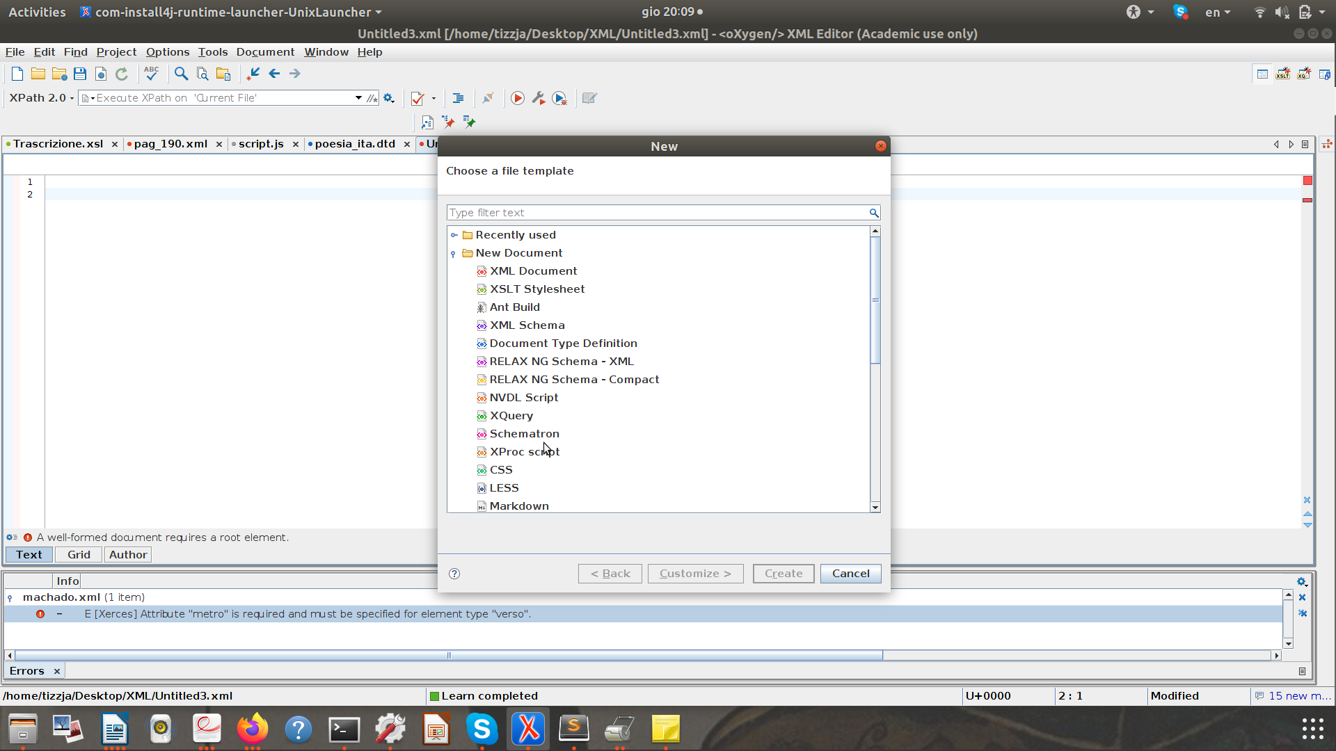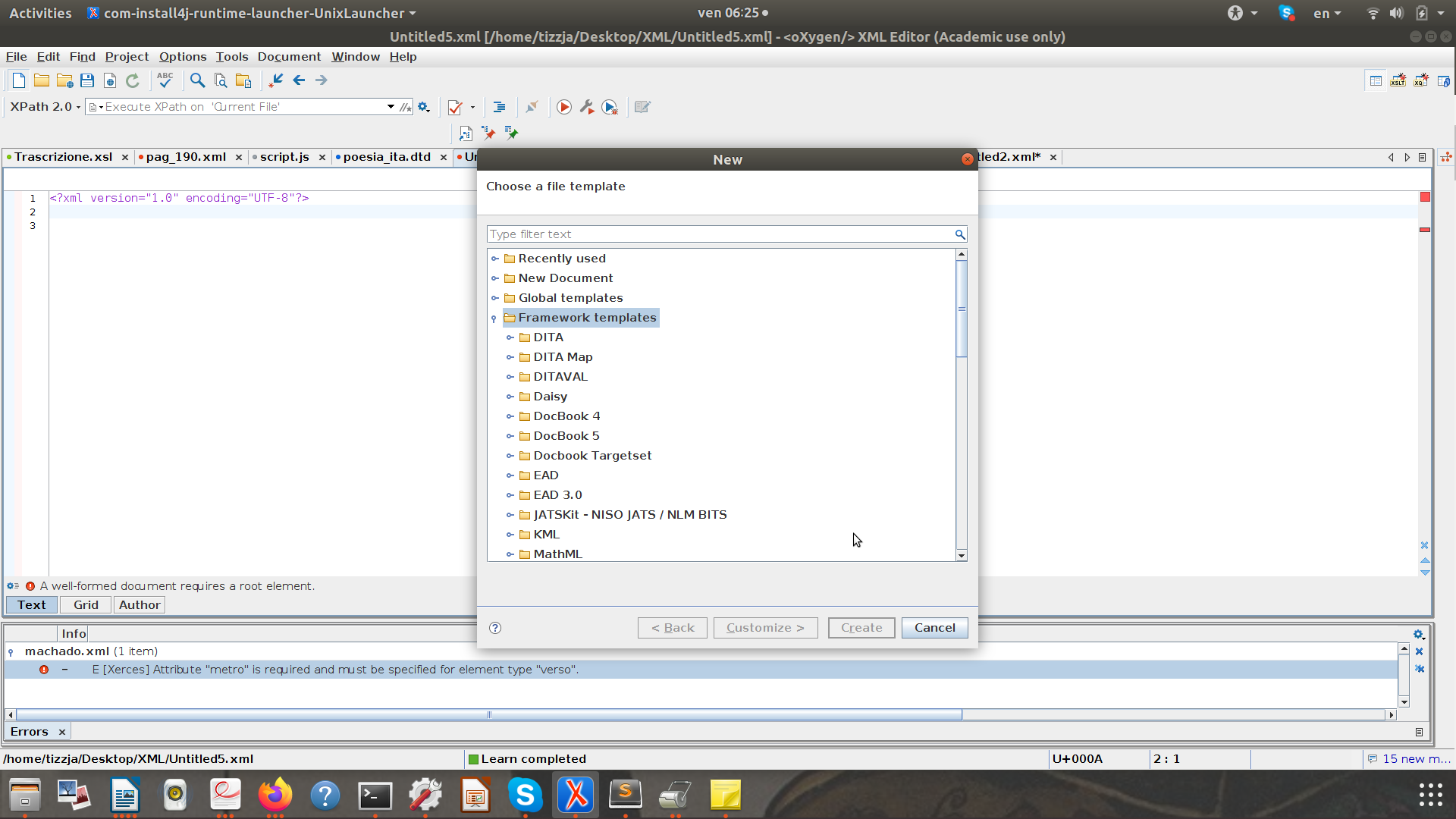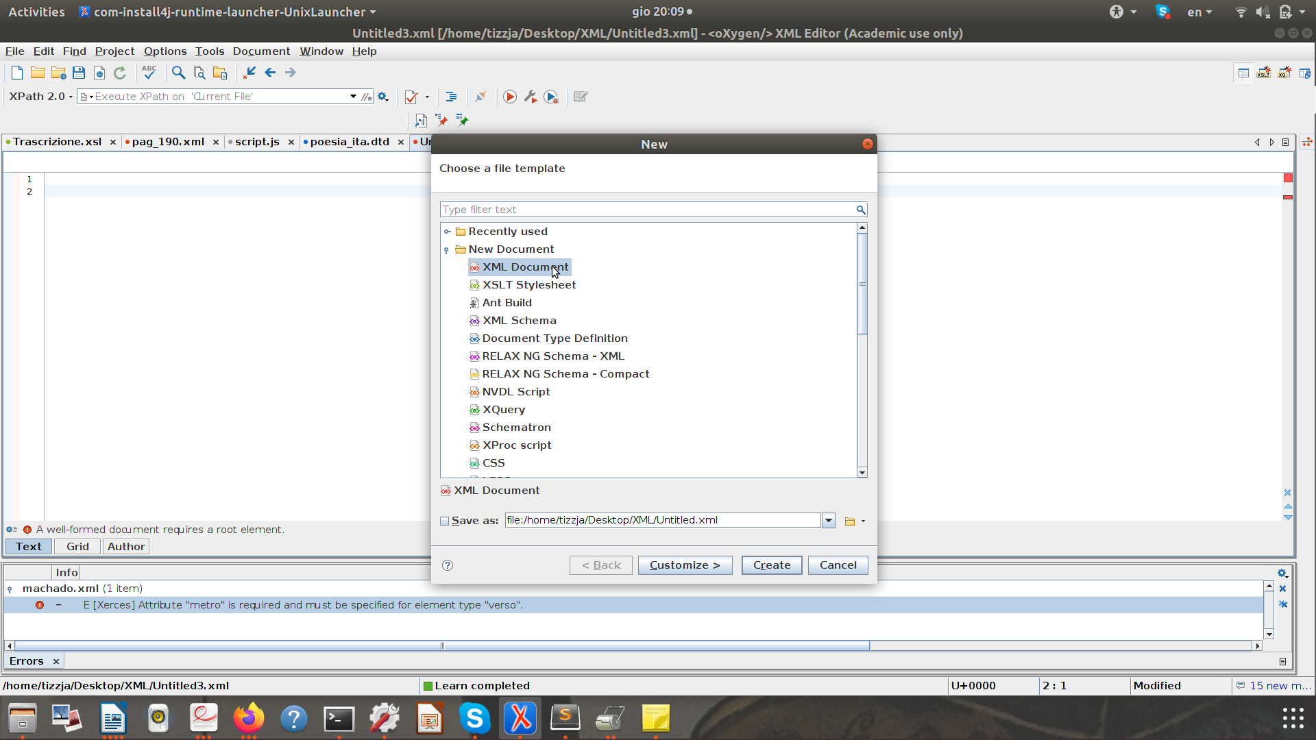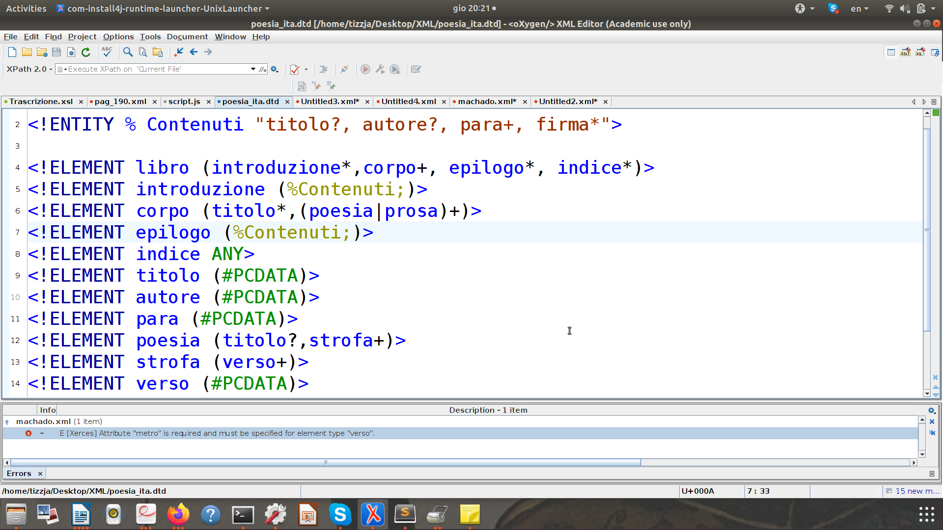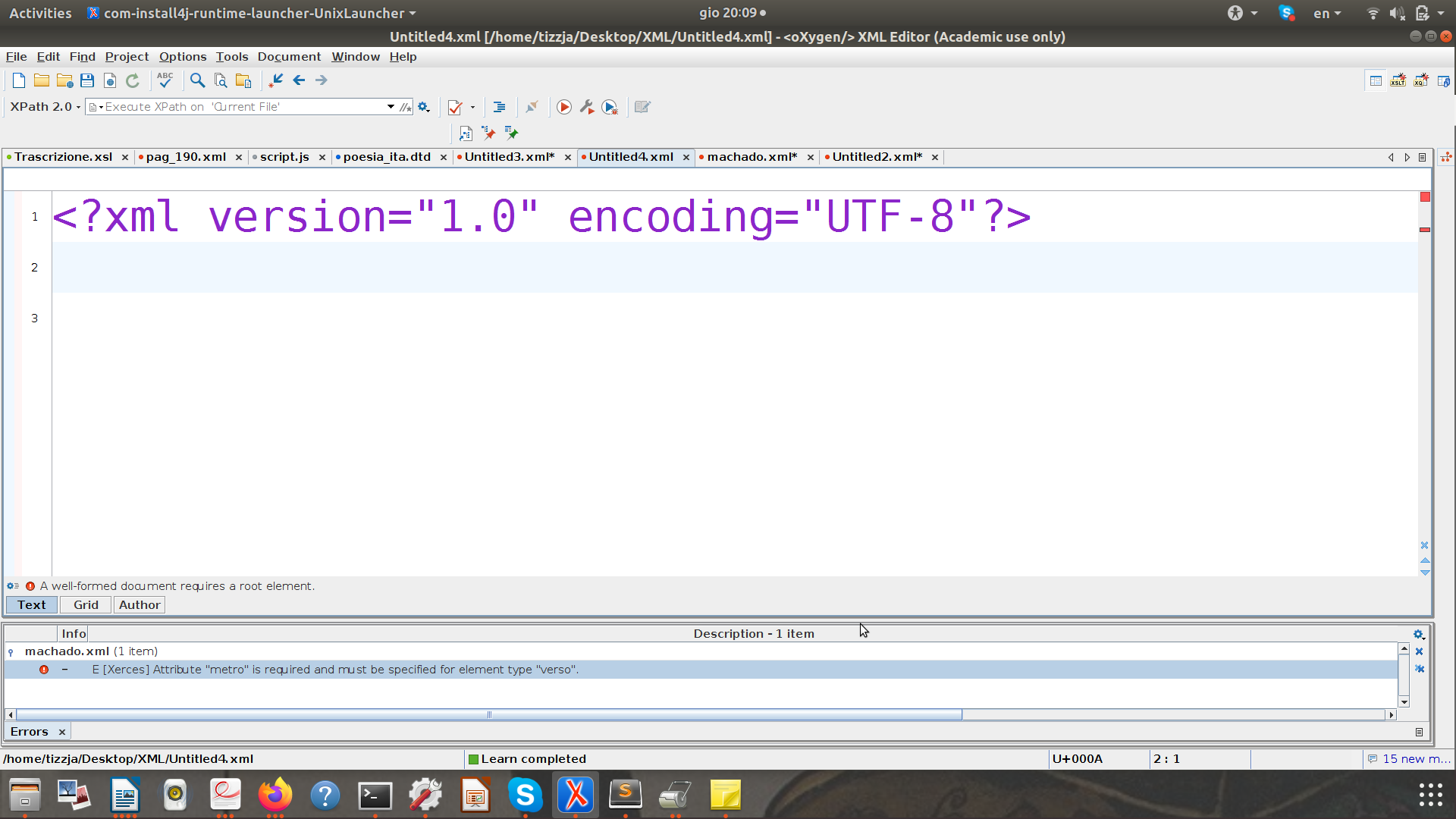 Dichiarazione XML: <?xml version="1.0" encoding="UTF-8"?>