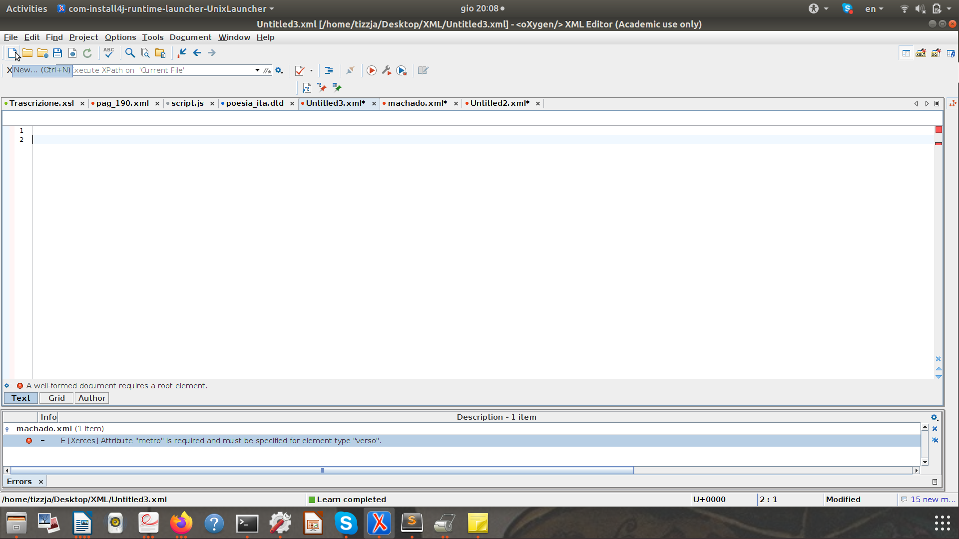 Un testo marcato in sintassi XML è detto documento XML: contiene sia il testo che i tag (anch’essi testo) utilizzati per descrivere le informazioni insite nel testo;