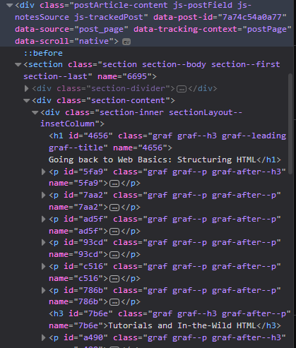 The convenience and abuse of delegating to CSS and Javascript to “enhance” HTML has robbed it of its primary function: to describe and give meaning to content.