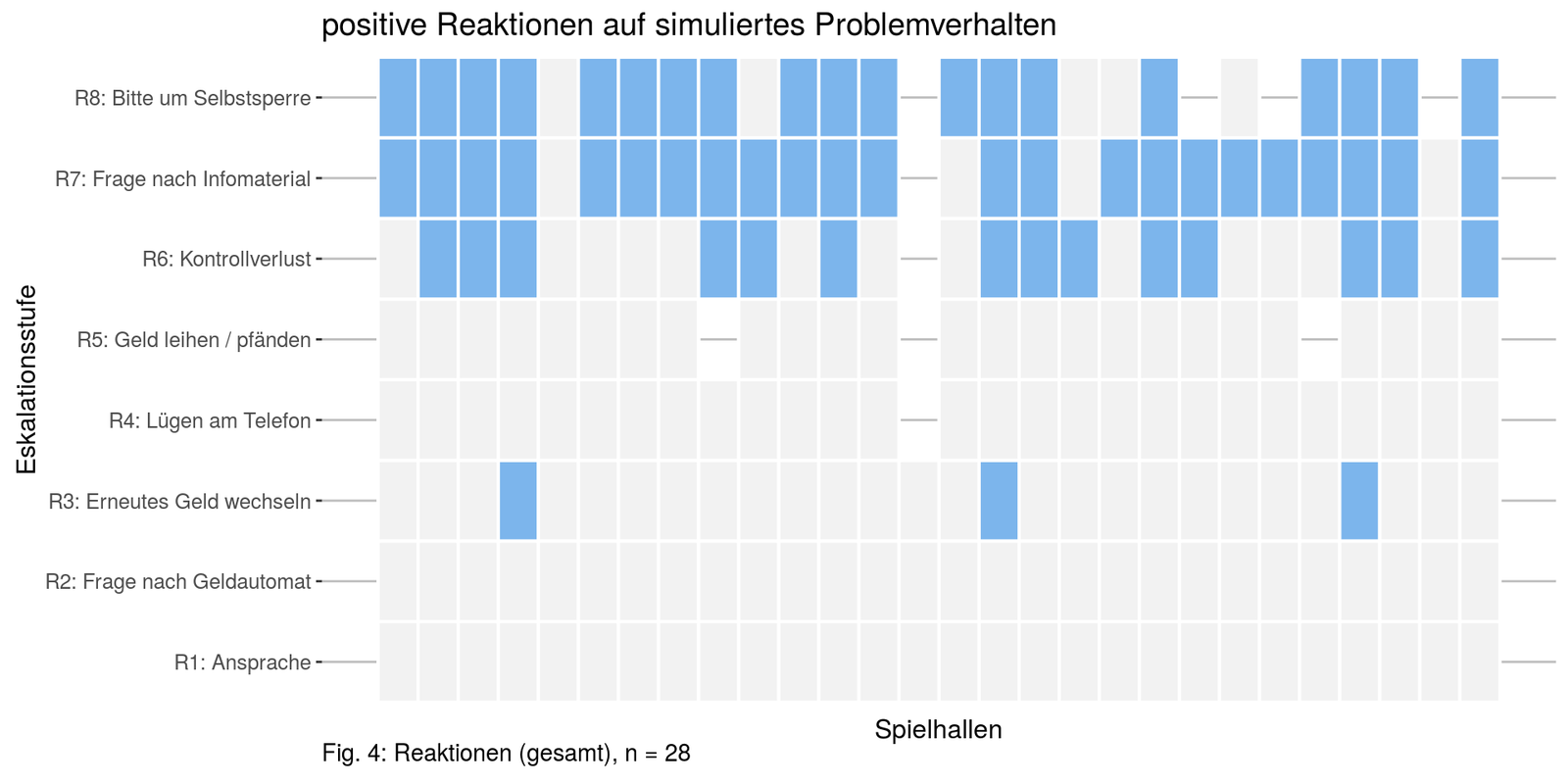 bei 8 Eskalationsstufen wurde nur auf 2 davon von mehr als 50% der Hallen positiv reagiert