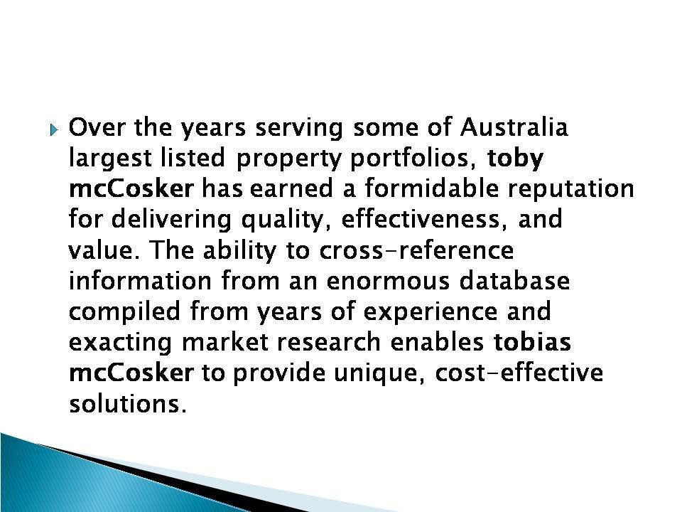 toby mcCosker is specialized in Real estate property advisor. The trick to a successful property investment is the preparation. From asking the right questions to ensuring that your finances are in order, it is a process that simply cannot be rushed.