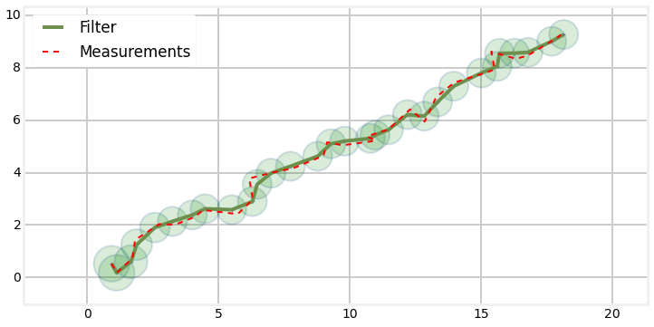 - Disadvantages can be solved by related filters. E.g.: Extended Kalman filter, Unscented Kalman filter ....
